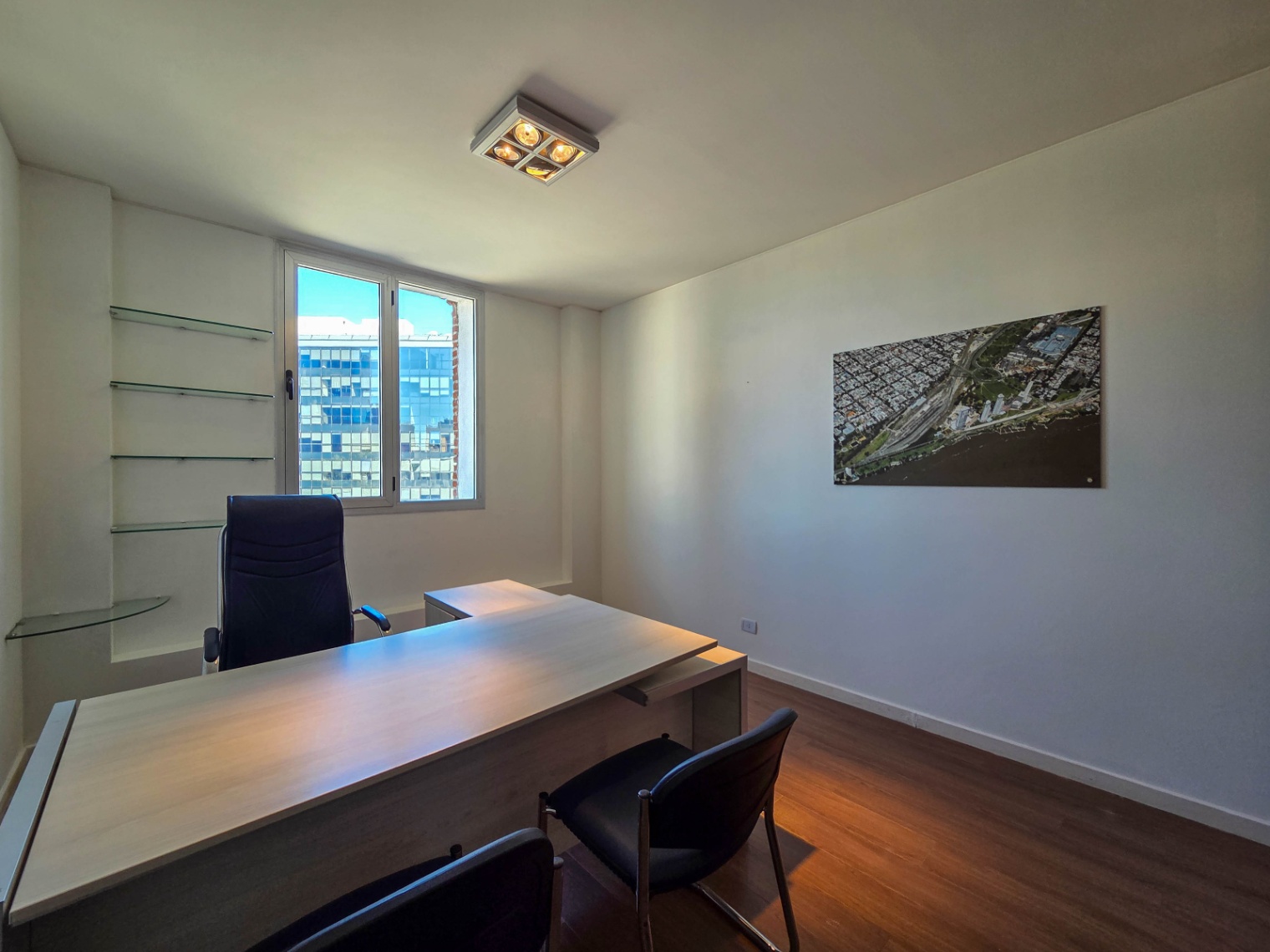 Planta libre de 7×3,50 metros aproximadamente. Pisos símil madera, ventana al frente con doble vidrio, aire acondicionado.